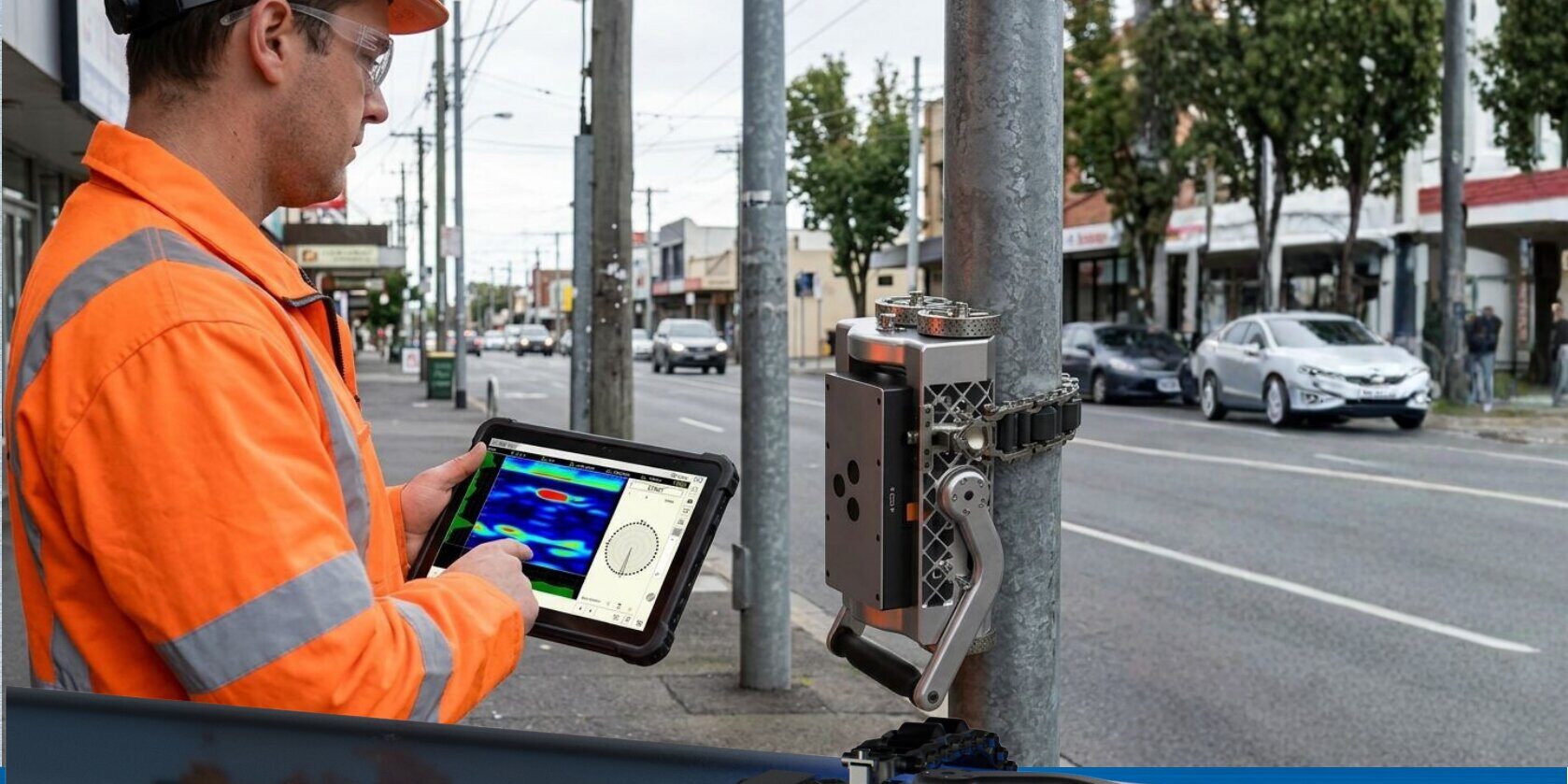 A1050 RANGER to unikalne rozwiązanie na rynku, zaprojektowane specjalnie do wykrywania korozji w trudno dostępnych miejscach, w tym pod podporami i w podziemnych odcinkach, bez konieczności stosowania żelu sprzęgającego.