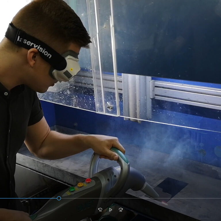 Zobacz jak przebiega proces czyszczenia laserowego z rdzy, farby, oleju czy pleśni powierzchni metalowych