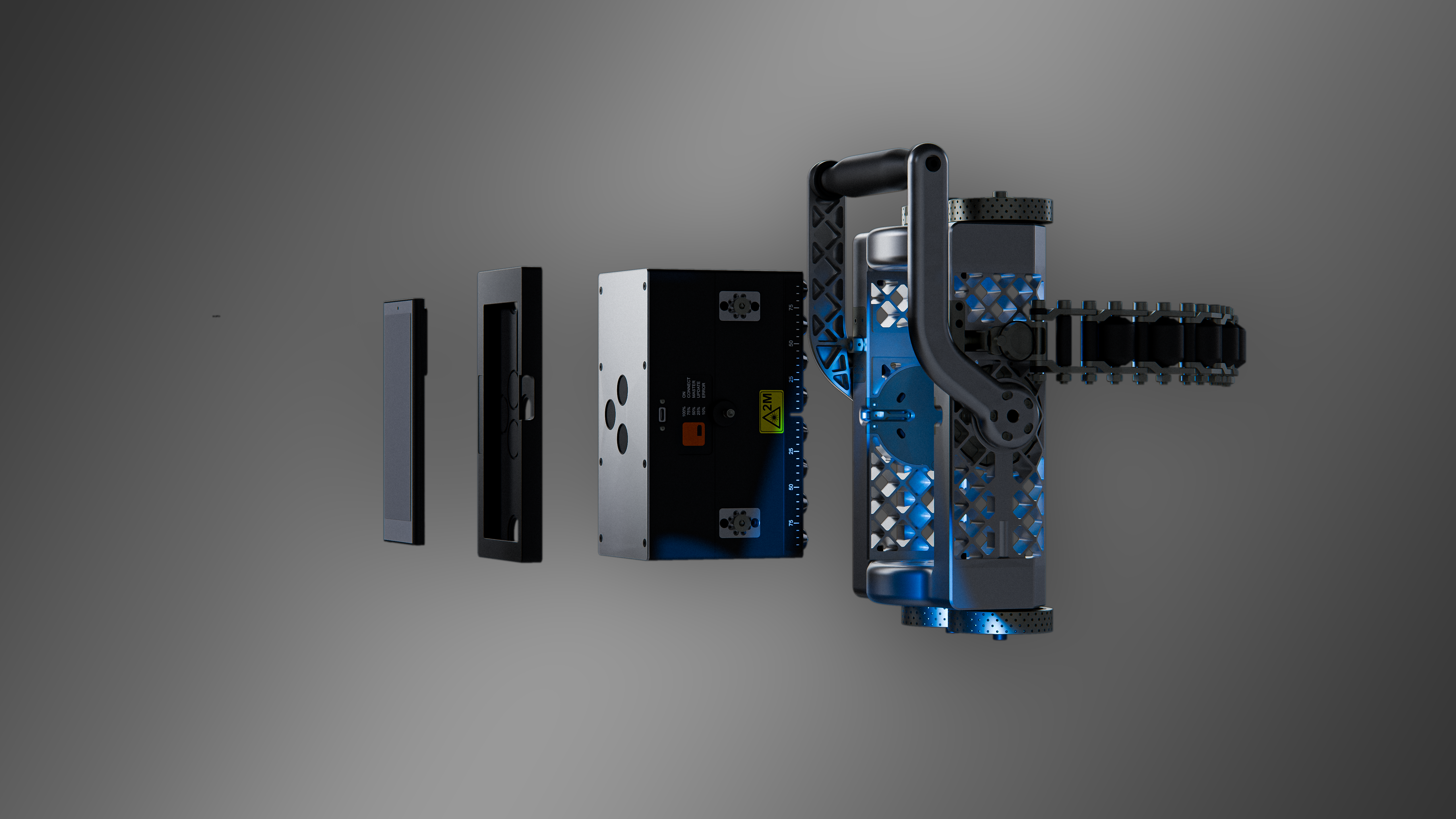 – Operator skanuje obiekt przeznaczony do inspekcji za pomocą manipulatora lub ręcznie, używając dwóch uchwytów i linijki magnetycznej.