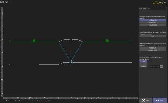 Za pomocą oprogramowania PC Companion technik może tworzyć lub importować dowolne profile spoin 2D do wykorzystania w systemie Wave. Po zaimportowaniu powierzchnie spoin są przypisywane do powierzchni kontaktowych, bezkontaktowych lub skanujących, co zapewnia, że szczegóły fazowania są widoczne, ale nie działają jak powierzchnia odblaskowa. Companion umożliwia również przeglądanie planu skanowania za pomocą dowolnego przetwornika, aby upewnić się, że osiągnięto pełne pokrycie, a wszelkie odbicia geometryczne są widoczne i przewidywane przed przeprowadzeniem inspekcji.
